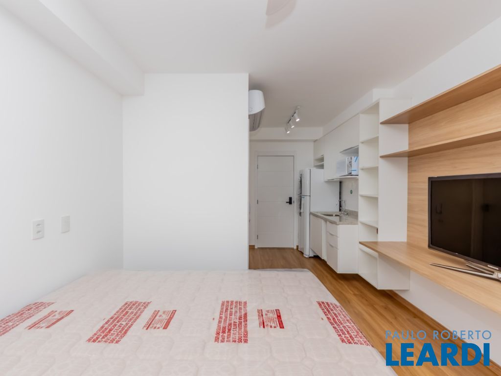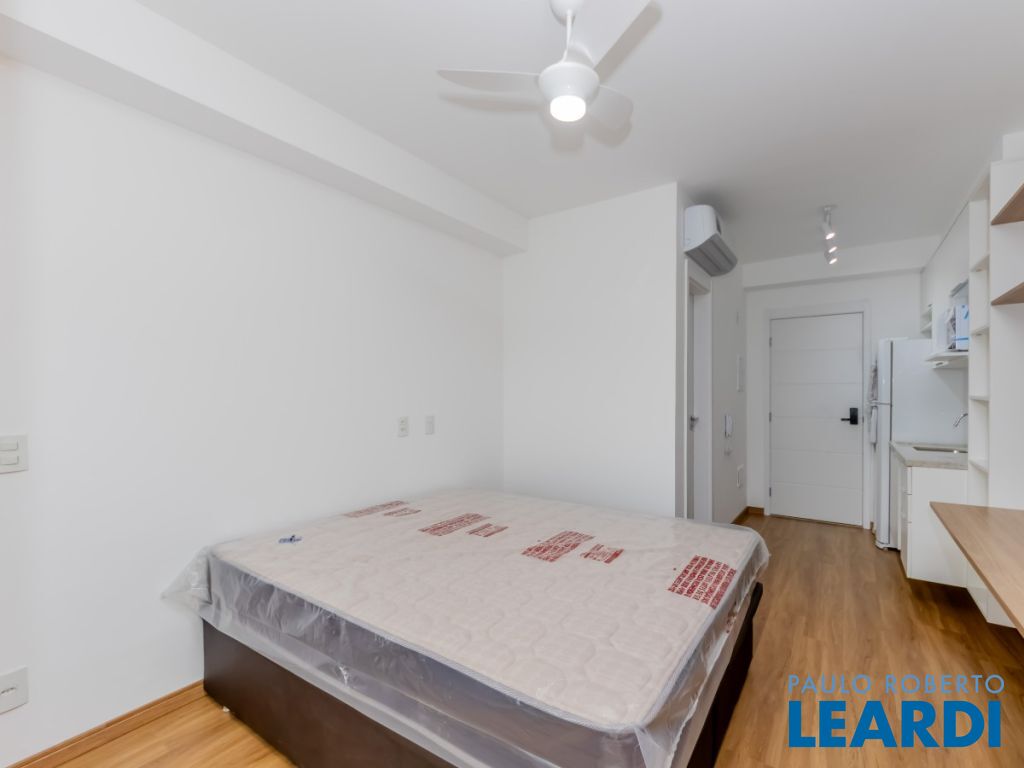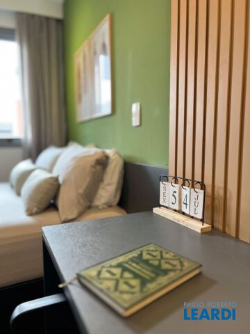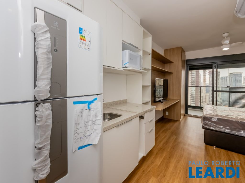 Estúdio (ou Studio) com 25m² e Varanda, Novo, Mobiliado e Equipado ao lado da Estação Brooklin do Metrô Apartamento com 25,4m², recém entregue, no 22º andar do Condomínio Haus Mitre Residences, a apenas 30 passos da estação Brooklin do metrô. Nunca habitado, com varanda, vista livre com direito a um belo pôr do sol, ar-condicionado quente/frio, já mobiliado, com marcenaria e equipamentos ainda lacrados, tudo novinho, este apartamento está pronto para te receber! A área de lazer do empreendimento, moderna e exclusiva, conta com: portaria 24 horas, lobby com concierge, área de delivery, coworking, open work, sala de reuniões, conjunto aquático composto por piscina acessível com trocador de calor e raia de 25m, solarium e deck molhado, fitness equipado com o que há de mais moderno com pé direito duplo, salão de jogos, salão de festas no rooftop, terraço gourmet com fire pit, bicicletário, mini market (em implantação), lavanderia coletiva e principalmente, muita segurança! Com uma condição singular, a apenas 30 passos do metrô Brooklin - Linha 5 Lilás, o Haus Mitre Residences é um projeto único que une sofisticação e modernidade em um dos polos econômicos mais importantes da cidade e da América Latina. Estrategicamente posicionado, além da proximidade com o metrô e fácil acesso à Marginal Pinheiros, fica perto também de importantes avenidas como Berrini, Faria Lima, Santo Amaro e Chucri Zaidan. É sem dúvida uma localização muito especial: a apenas 4 minutos do Shopping Morumbi, a 6 minutos do Shopping Market Place, a 7 minutos dos Shoppings JK Iguatemi e Vila Olímpia, a 6 minutos do Parque do Povo e a apenas 6 minutos do Aeroporto de Congonhas, proporcionando maior mobilidade e liberdade de se deslocar com facilidade e tranquilidade!