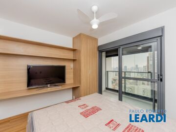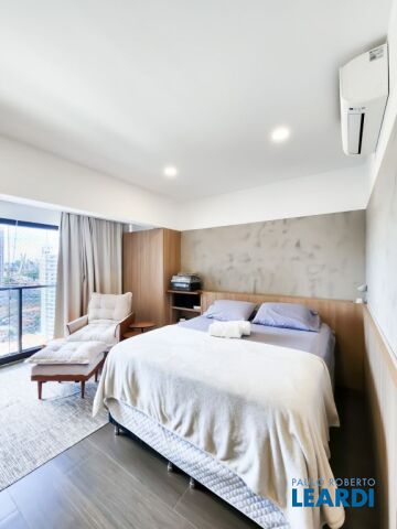 Viva com conforto, praticidade e estilo neste studio novíssimo , totalmente reformado com excelente bom gosto, localizado em um condomínio moderno a poucos passos do metrô Brooklin, em uma das regiões mais valorizadas da zona sul de São Paulo. Com 27 m², o estúdio possui planta inteligente, ambientes integrados e excelente aproveitamento de espaço. A varanda integrada amplia a área social e oferece vista aberta, criando um ambiente acolhedor e funcional. O imóvel conta ainda com ar-condicionado e está preparado para acomodação até 4 pessoas, ideal tanto para morar quanto para investir. Totalmente reformado, será entregue 100% mobiliado, com marcenaria sob medida, iluminação personalizada e acabamentos de alto padrão, oferecendo praticidade desde o primeiro dia. A localização é um grande diferencial: ao lado do metrô Brooklin com fácil acesso às principais vias da cidade, linhas de ônibus, comércios, serviços e shoppings, garantindo mobilidade e qualidade de vida no dia a dia. O edifício é novo, acessível e conta com portaria 24 horas, sistema de segurança, alarme e monitoramento, comodidade e conforto aos moradores. O condomínio oferece infraestrutura completa de lazer e conveniência: piscina, espaço fitness, coworking, salão de festas, salão de jogos, espaço gourmet e lavanderia. Dispõe ainda de vaga rotativa e gerador de energia nas áreas em comum. Uma excelente oportunidade para quem busca viver em condomínio fechado, próximo ao metrô, com lazer completo e em uma das melhores localizações de São Paulo. - Aceita financiamento